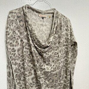 tags: animal print, designer, knit, neutral, contemporary, cowl neck, wool blend, dolman sleeve, elevated basic
