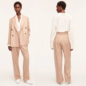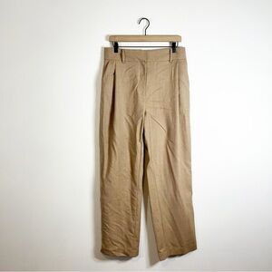 Excellent preowned condition womens size 6. Tan wide leg trouser. Crafted of luxe wool-blend herringbone, pleated trouser tailored with a high waist and slightly oversized fit for a borrowed-from-the-boys feel.