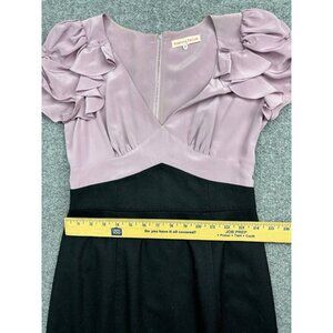 Rebecca Taylor Wool Dress Women's 6 Pink Black Ruffle Short Sleeve V Neck Pencil