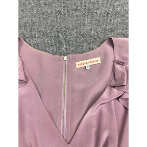 Rebecca Taylor Wool Dress Women's 6 Pink Black Ruffle Short Sleeve V Neck Silk