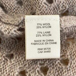 Materials: 77% wool, 23% nylon. Dry clean only. Rib knit edges. Perforated knit