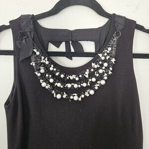 Rebecca Taylor black cocktail mini dress. Perl embellished like a necklace.