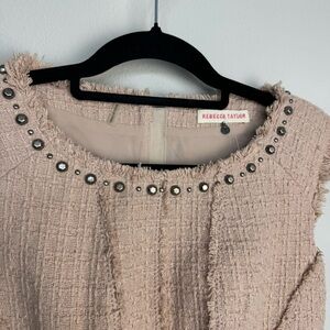 Gently used excellent condition Rebecca Taylor blush pink Tweed blouse top peplum with studs size 2