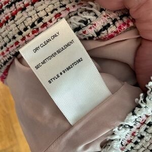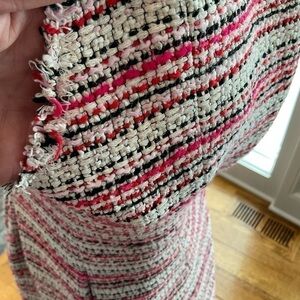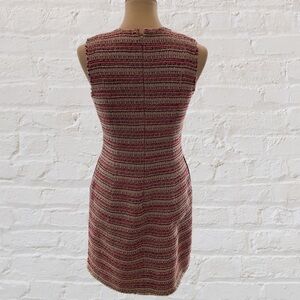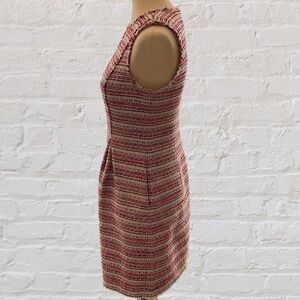 Rebecca Taylor soft cotton tweed dress in pretty pinks, creams & black colors. Perfect throw on statement dress. Raw edge style. Fully lined. Zipper back. Knee length style.