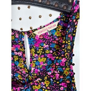 Rebecca Taylor colorful floral ruffle tank top silk blouse size 0