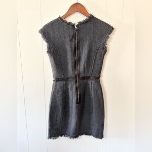 Rebecca Taylor dark grey tweed fringe sheath dress size 2