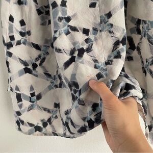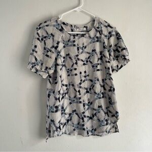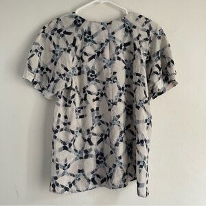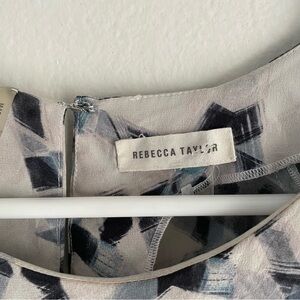 Rebecca Taylor geo print silk flutter top in gray and blue. Wonderful, versatile work appropriate top from high-end brand Rebecca Taylor. Beautiful geometric print. Light silk fabric.