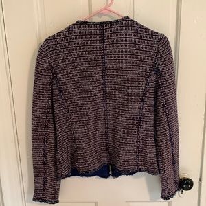 Excellent used condition. No flaws. Functional front pockets. Pairs well with denim, work trousers, or a sheath dress. Jacket has some stretch to it for a perfect, comfortable fit. I adore this jacket!