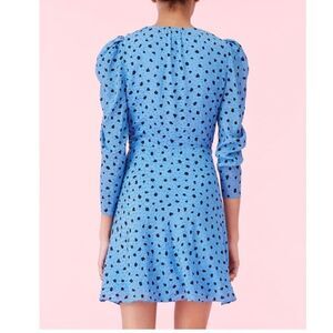 Rebecca Taylor nova dot clip faux wrap dress long sleeve silk blend in blue