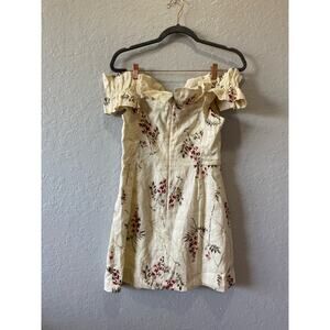 Rebecca Taylor off the shoulder Linen embroidered dress Size 4 NWT