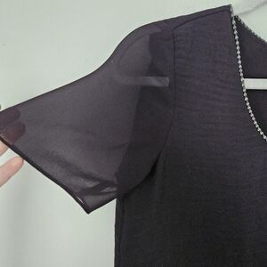 Rebecca Taylor plum nlouse. Sheer with two layers. Decorative chain at neckline.