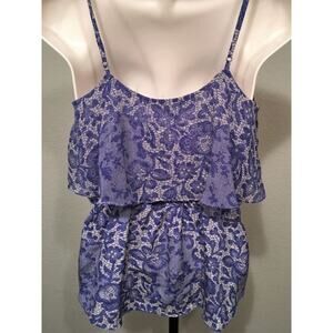 Rebecca Taylor silk tank blue floral lace print EUC adjustable straps Size 8