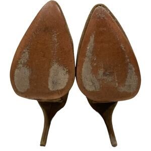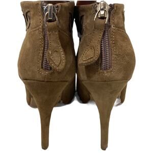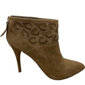 Rebecca Taylor suede ankle booties tan leather high heel, laser cut leopard cuff