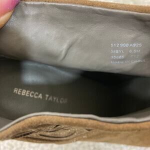 Rebecca Taylor Sibyl tan suede ankle booties with laser cut leopard pattern, size 6.5. Orig retail $395. Excellent pre owned condition. Light wear to sole, a couple small marks on uppers near toe. Please see pics for condition details. Topstitched leopard laser cut detail at ankles, back zipper closure, lightly padded leather foot bed, almond toe, 4" heel. Gorgeous boots with jeans or dresses!
