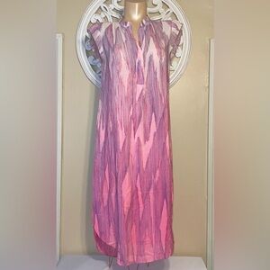 Rebecca Taylor women’s 10 dress midi maxi short sleeve pink fuschia EKG silk