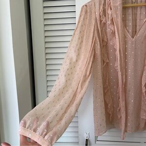 Rebecca Taylor x Revolve Metallic Dot Ruffle Blouse Long Sleeve | Pink | Size 10
