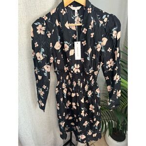 Rebecca Taylor Dress 00 Daniella Black Pink Floral Print Women’s Silk NWT