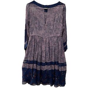 Rebecca Taylor Dress Womens 6 3/4 Sleeve Static Print Flare Hem Iridescent FLAWS