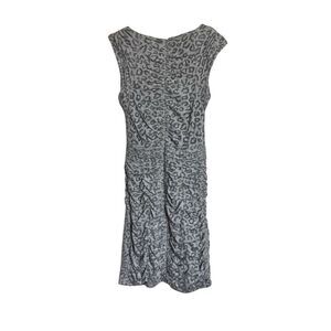 Rebecca Taylor Dress Womens Size Small Gray Mini Leopard Print Ruched Sleeveless