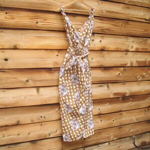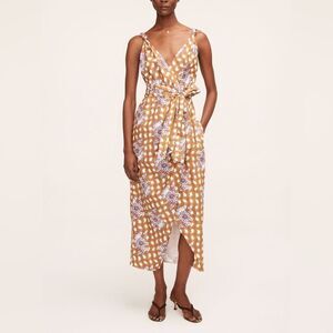 An unexpected twist on a classic pattern, this exclusive gingham print features a mesmerizing wavy design topped with hand-drawn daisies. A wrap style offers an adjustable, custom fit.