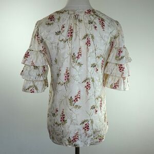 Rebecca Taylor Ivie Silk Blend Ruffle Sleeve Floral Blouse Size 0
