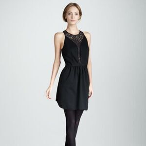 Rebecca Taylor Lace Panel Ponte Dress with pockets. Size 4, Gently used condition with no visible flaws. Exposed back zipper. Dry clean.