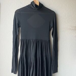 Rebecca Taylor Pleated Knit Mock Neck Open Back Long Sleeve Black Maxi Dress XS