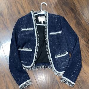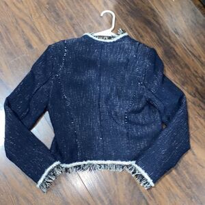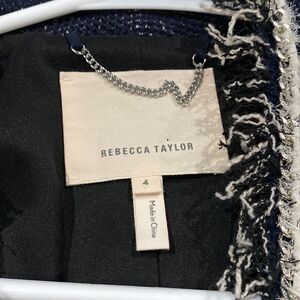 Rebecca Taylor Rio Fringe-Trim Tweed Jacket Navy Blue