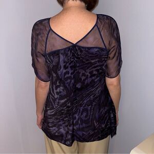 Rebecca Taylor Silk Cheetah Blue Short Sleeve Blouse Top