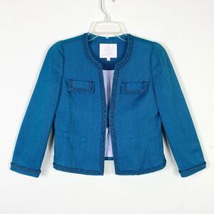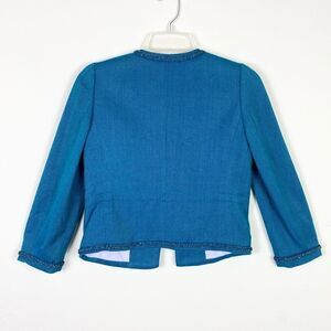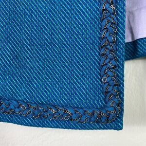 Rebecca Taylor Teal Silk Blend Tweed Chain Accent Blazer Jacket