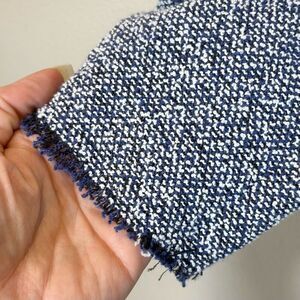 Navy blue and white tweed texture with zipper closure and peplum cut. This jacket adds a vintage, classy style to professional wear. Perfect with dark jeans and a light top.