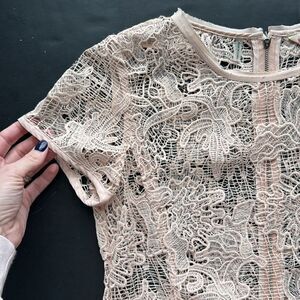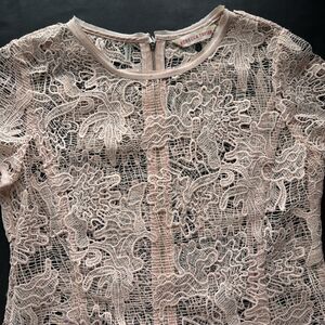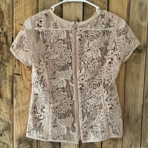 Rebecca Taylor Women's Sz 0 Lace Cap Sleeve Zipper Back Blouse Top Blush Pink