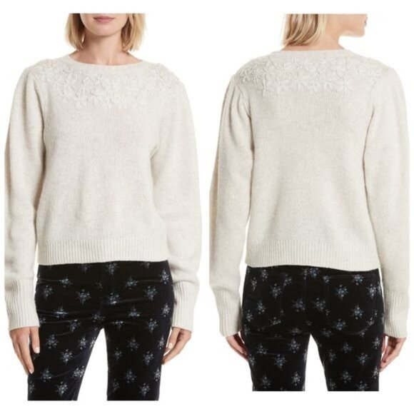 Rebecca Tylor LA VIE Floral Embroidered ivory wool sweater XSmall