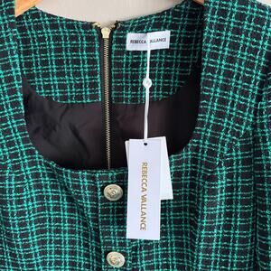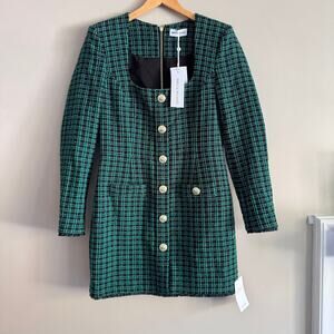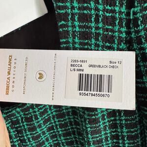 Rebecca Vallance Becca Green Black Check Long Sleeve Mini Dress US 8 UK 12 New