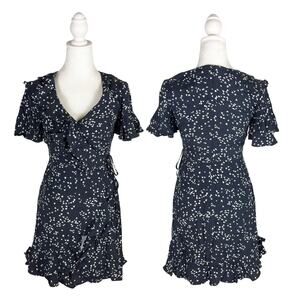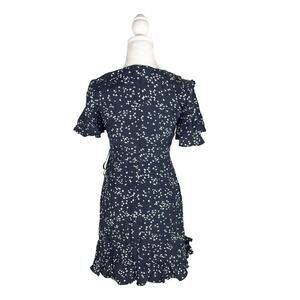 Style: Flores Ruffled Printed Crepe Wrap Mini Dress