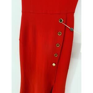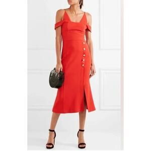 Rebecca Vallance Dress Beltran Crepe Stretch Midi Cold Shoulder Tomato Red Sz 6