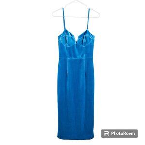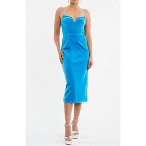 Rebecca Vallance Dress Blue Bernadette Velvet Pencil Midi Cocktail NWT Size 6