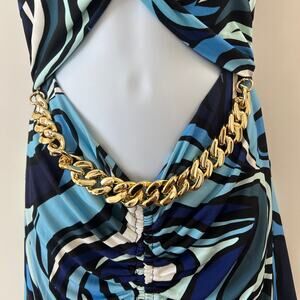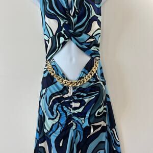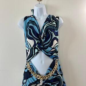 Rebecca Vallance Mira Cutout Midi Dress Womens 10 Blue Chain Detail Colorful