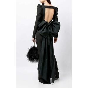 Rebecca Vallance Open-Back Bow Detail Taffeta & Cloque Monique Gown Black Size 8