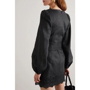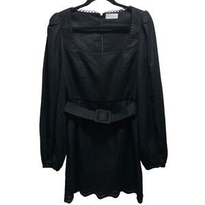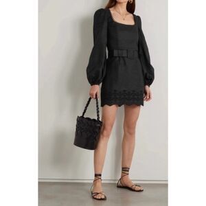 Rebecca Vallance Zahara Black Linen Belted Eyelet Mini Dress Size 4