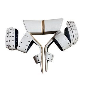 Rebecca minkoff carter grommet strappy block heel sandals light grey 8.5m