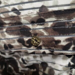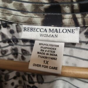 Rebecca Malone Brown Black Cream Animal Print V-Neck Blouse 3/4 Sleeve Size 1X