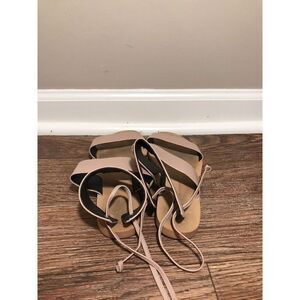 Rebecca Minkoff Emma Leather Sandals Gladiator Ankle Wrap Minimalist Women's Sz 6 Tan.