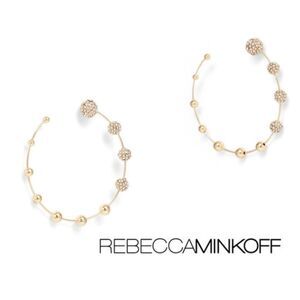 Rebecca Minkoff Gold Plated Swarovski Pave Sphere Crystal Hoop Earrings