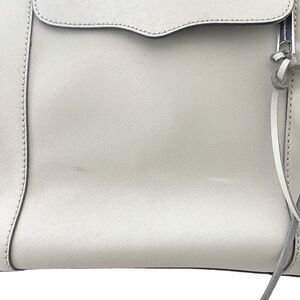 Rebecca Minkoff MAB tote bag in light gray/taupe textured leather. Some exterior scuffs (see photos) but otherwise great condition. Approximately 14” long and 10.5” high. Makes a great work bag!