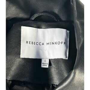 Rebecca Minkoff woman's black faux leather moto motorcycle jacket. It's made of 100% polyurethane and is fully lined in 100% polyester. It's a woman's size large. Org. list price $248.