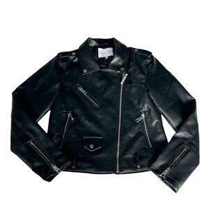 Rebecca Minkoff Woman's Sz L Black Faux Leather Moto Asymmetrical Zip Jacket