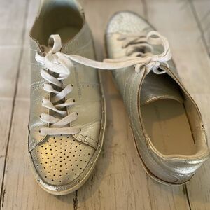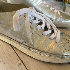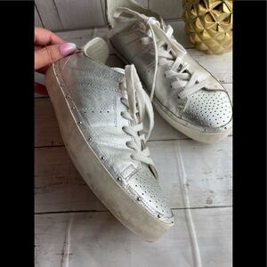 Some spots on left shoe, left shoe missing sole