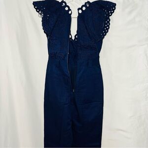Rebecca Taylor Ariana Embroidered Eyelet Indigo Blue Jumpsuit 00