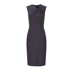Grey crepe (53% Polyester, 43% Wool, 4% Lycra). Sheath.
